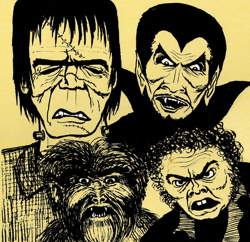 The artwork is not signed, but it reminds me of something a junior high kid might draw on his school notebook. The monsters that make up the scab four are Frankenstein's Monster, Dracula, Wolfman and the Hunchback of Notre Dame.